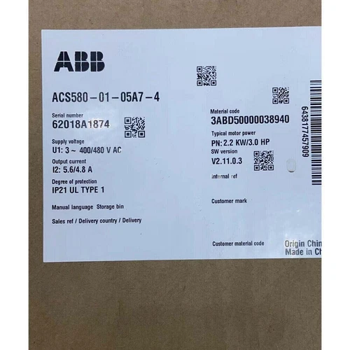 The ABB ACS5800105A74 Frequency Converter 2.2kW is a reliable and efficient solution for motor control. Key specifications include a power rating of 2.2kW, a compact design, and user-friendly interface. Suitable for various industrial applications requiring precise speed and torque control, optimizing energy consumption.