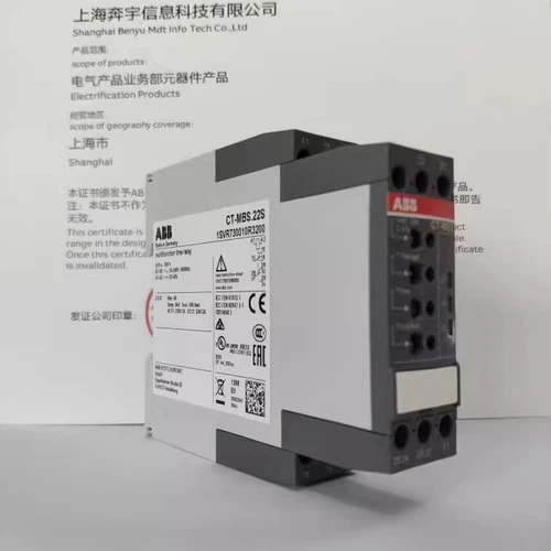 The ABB CT-MBS.22S Time Relay 2C/O 24-240VAC is a highly reliable and versatile timing device designed for a wide range of industrial applications. This time relay features two changeover (2C/O) contacts, providing flexible switching options for various control circuits. Its broad operating voltage range of 24-240VAC makes it suitable for use in diverse power environments, enhancing its adaptability and ease of integration into existing systems. The CT-MBS.22S offers precise and accurate timing functions, ensuring optimal control and automation of processes. Key features include adjustable time ranges, multiple timing modes (such as on-delay, off-delay, and pulse generation), and LED indicators for visual status monitoring. Its robust construction and high-quality components guarantee long-term reliability and performance, even in demanding industrial conditions. This time relay is ideal for use in applications such as machine control, process automation, building automation, and HVAC systems. The ABB CT-MBS.22S is designed for easy installation and configuration, saving time and reducing maintenance costs. Its compact size allows for efficient use of panel space, making it a practical choice for both new and retrofit installations. With its comprehensive features and dependable operation, the ABB CT-MBS.22S Time Relay provides an effective solution for precise timing control needs.