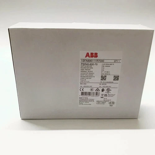 The ABB PSR4560070 Soft Starter 45A offers efficient motor control. Key specs: 45A rated current, 208-600V voltage range, and built-in bypass. Features include adjustable starting torque, voltage ramp, and compact design. Suitable for pumps, fans, and compressors, ensuring smooth starts and reduced mechanical stress.