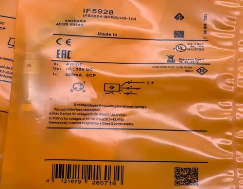 The IFM IF5928 Proximity Switch Sensor is a robust and reliable inductive sensor designed for demanding industrial applications. This sensor, identified by model number IF5928, offers precise and consistent performance in position detection. Its key features include a flush mount design, simplifying installation and minimizing potential damage from physical impact. The sensor boasts a generous sensing range of 15mm, allowing for flexible placement within your machinery. It operates on a DC PNP output function, ensuring compatibility with a wide range of control systems. The electrical connection is facilitated through an M18 connector, providing a secure and standardized interface. Encased in a durable stainless steel housing, the IFM IF5928 is built to withstand harsh industrial environments, resisting corrosion and physical wear. Its suitability extends to various models requiring accurate and dependable proximity sensing for automation processes. This sensor is commonly used in applications such as machine tools, packaging equipment, and material handling systems, where precise position monitoring is crucial for efficient operation. With its robust construction and reliable performance, the IFM IF5928 Proximity Switch Sensor is an excellent choice for enhancing the precision and control of your industrial automation systems.