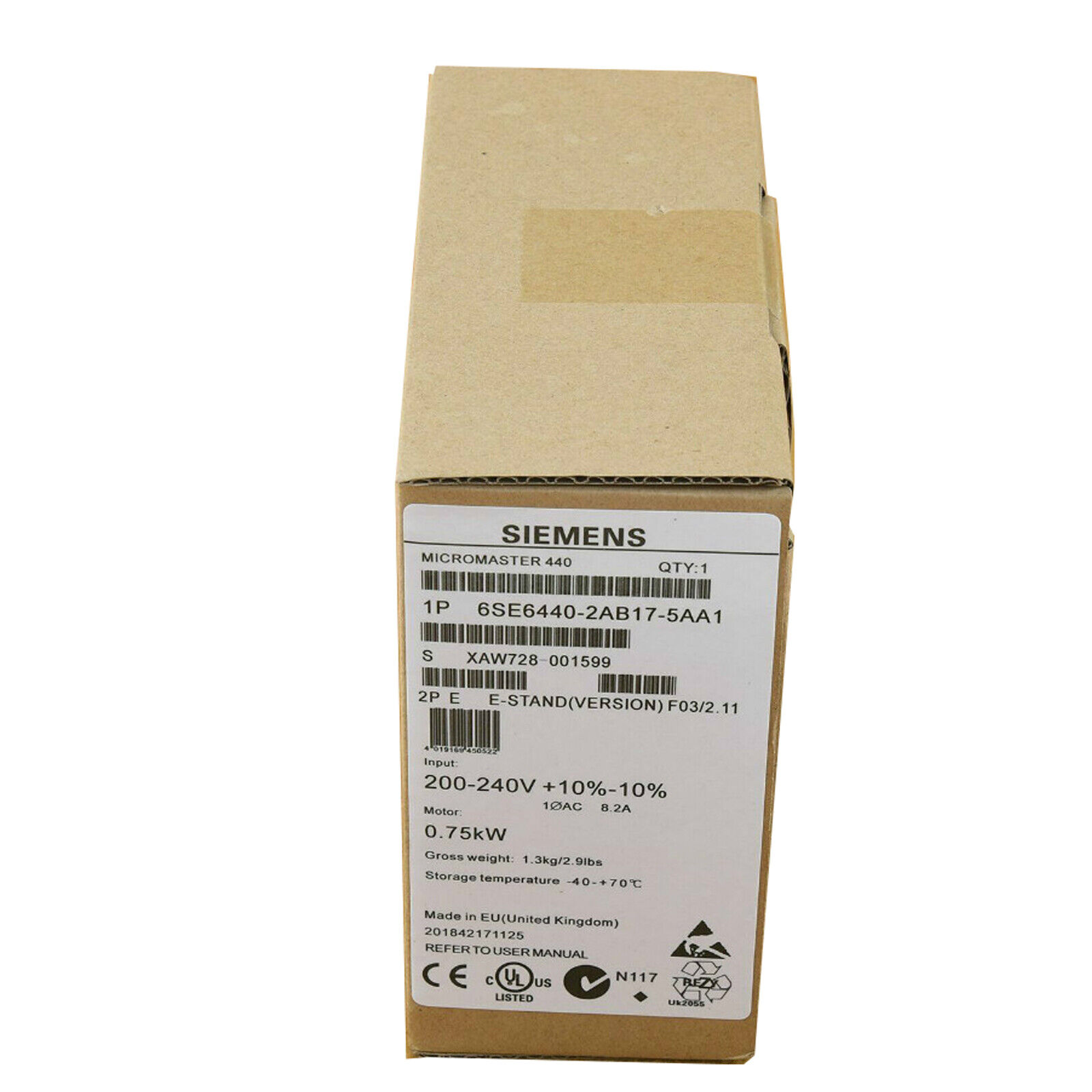 Product Name: Siemens MM440 Inverter 6SE6440-2AB17-5AA1 220V 0.75 KW